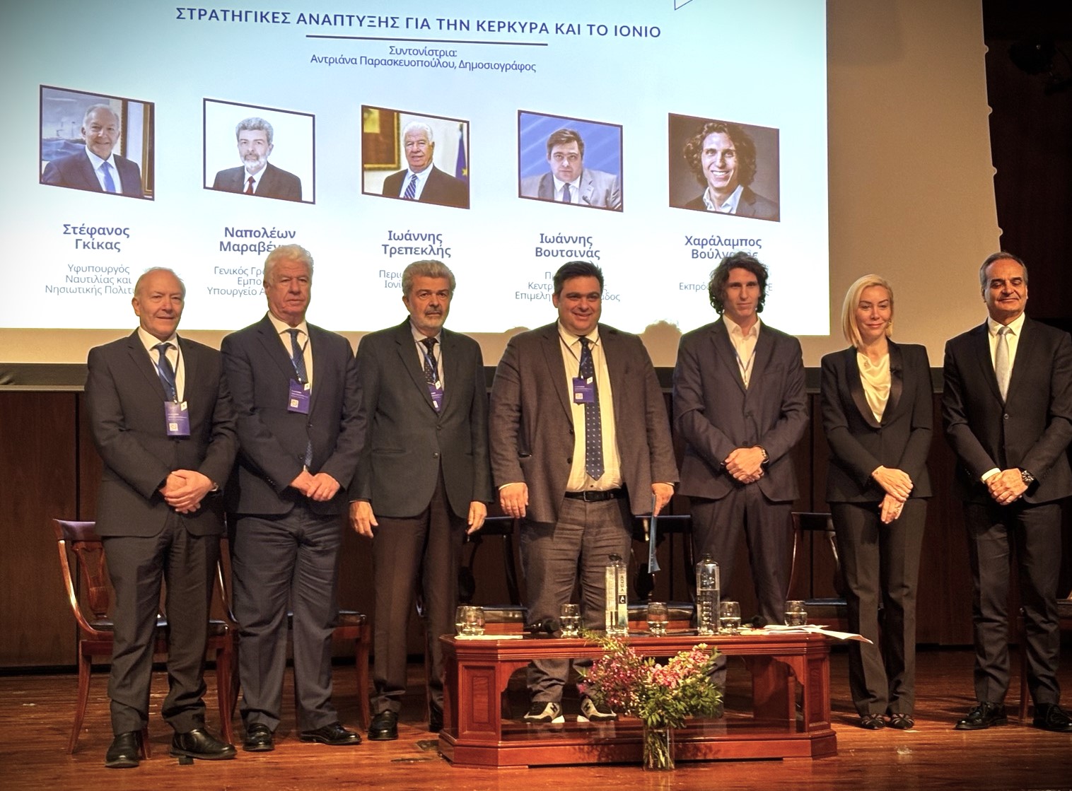 Ο Περιφερειάρχης έλαβε μέρος στο πάνελ με θέμα «Στρατηγικές ανάπτυξης για την Κέρκυρα και το Ιόνιο», μαζί με τον Υφυπουργό Ναυτιλίας & Νησιωτικής Πολιτικής Στέφανο Γκίκα, τον Γενικό Γραμματέα Εμπορίου, Ναπολέοντα Μαραβέγια, τον Πρόεδρο της Κεντρικής Ένωσης Επιμελητηρίων Ελλάδας, Γιάννη Βουτσινά και τον εκπρόσωπο του Δ.Σ. του ΣΕΤΕ, Χαράλαμπο Βούλγαρη