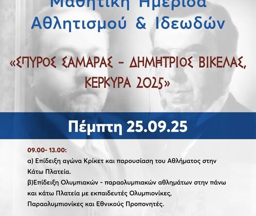 Μαθητική Ημερίδα Αθλητισμού και Ιδεωδών «Σπύρος Σαμάρας – Δημήτριος Βικέλας, Κέρκυρα 2025»