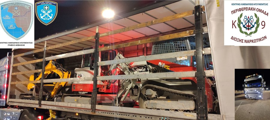 Συγκεκριμένα, σε έλεγχο που διενεργήθηκε τις βραδινές ώρες την 3.9.2025 στο λιμάνι εξωτερικού Ηγουμενίτσας από στελέχη του Γραφείου Ασφαλείας, με την συνδρομή στελεχών της ομάδας Κ9/Περιφερειακής Ομάδας Δίωξης Ναρκωτικών (Π.Ο.ΔΙ.Ν.) και του Γραφείου Τροχαίας του Κεντρικού Λιμεναρχείου Ηγουμενίτσας στον 44χρονο κατά τον κατάπλου ενός επιβατηγού – οχηματαγωγού πλοίου προερχόμενου από το λιμάνι Πρίντεζι Ιταλίας, εντοπίστηκαν εντός του φορτηγού (Φ/Γ) οχήματος μετά επικαθήμενου που οδηγούσε, τα κάτωθι μηχανήματα έργου: