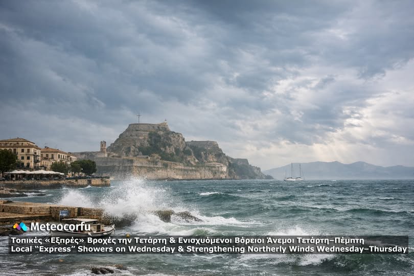 MeteoCorfu: Τοπικές «Εξπρές» Βροχές την Τετάρτη και Ενισχυόμενοι Βόρειοι Άνεμοι Τετάρτη–Πέμπτη